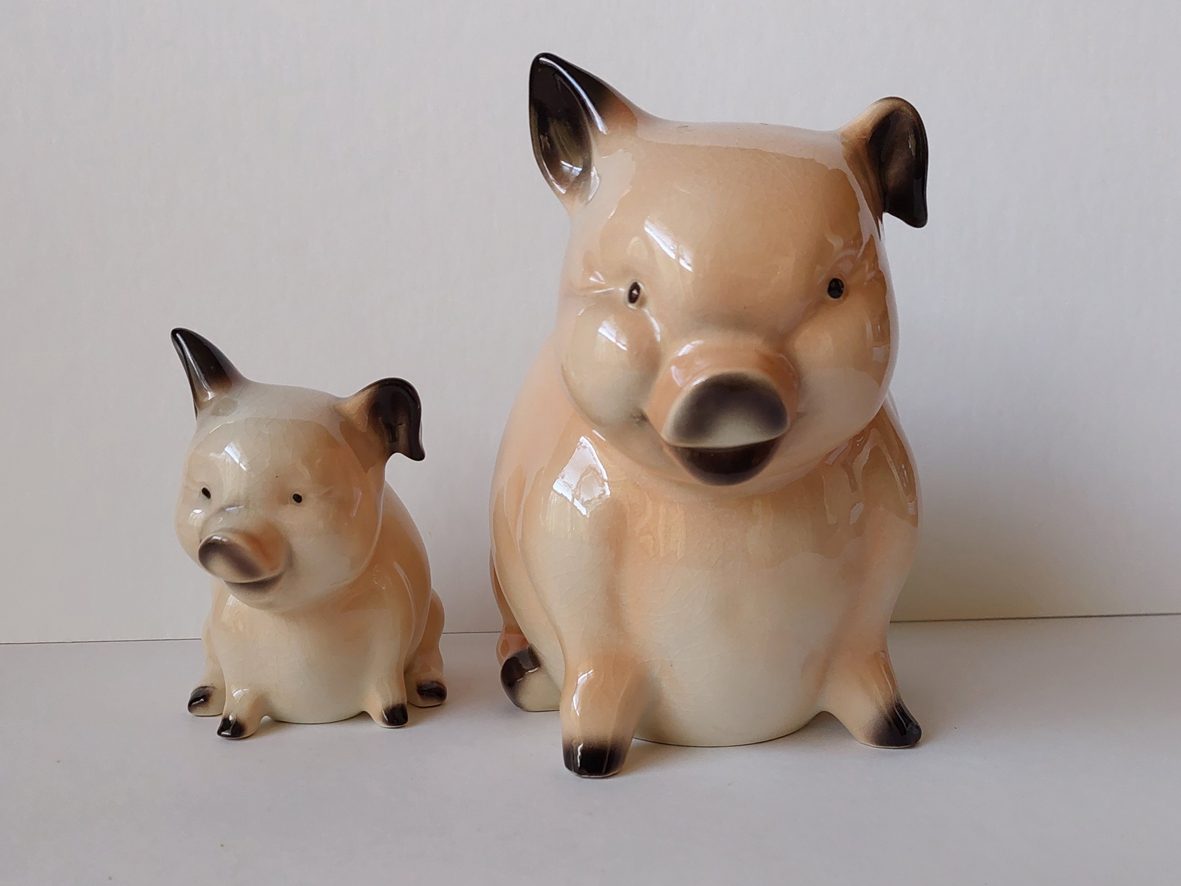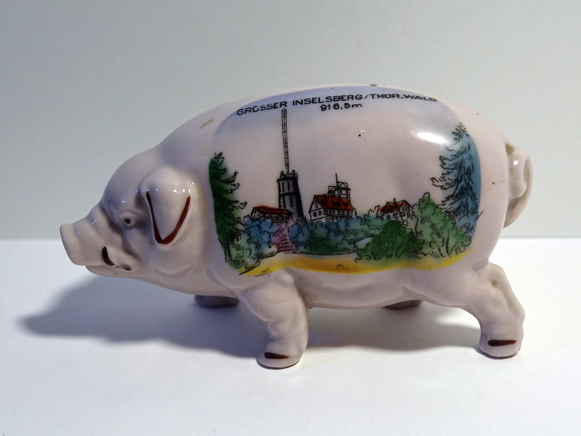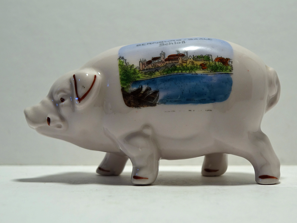 Veel spaarvarkens in deze rubriek. Er zijn er talloze, maar helaas (voor mijn verzameling) heel veel met gat en/of slotje in de buik. Gelukkig heb ik enkele authentieke zonder gat. Waaronder de befaamde Glücksschweinchen, die ook steeds zeldzamer (en daardoor duurder) worden.